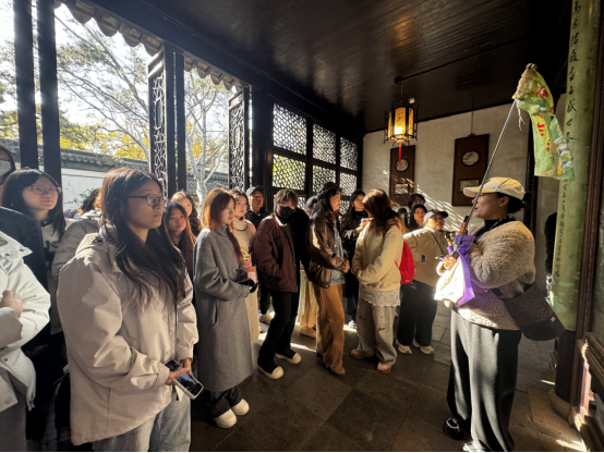 苏州站聚焦传统美学的现代转译。在贝聿铭设计的苏州博物馆,师生系统学习建筑如何以现代语言重构园林意蕴;在拙政园,大家实地分析“借景”“框景”等手法,以及色彩、纹样在空间中的运用,深入领会江南园林所蕴含的视觉美学与设计哲学。