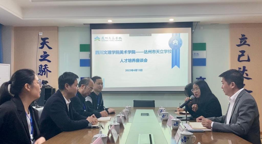 座谈会上,罗江书记对十大买球十大买球基本情况、办学理念、专业设置、人才培养模式等方面进行了详细介绍,王斌副书记就学院2023届毕业生情况进行了推介,以期实现人岗匹配。达州天立学校副校长王强、甘冰如指出目前美术、数学、计算机、音乐等专业教师仍有缺额,并就学校概况、青年教师基本素质、培养渠道、招聘流程、基本待遇等进行了交流发言。