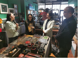 本次访企拓岗中重要的一环是前往成都桉树林城市创客中心,参观了偶坐木工创意坊、叁合漆器创意坊、草木行丘植物染创意坊、玉帛西服高端定制坊、首饰珠宝创意坊、剪纸创意坊、陶艺手工坊等创意工坊,还走访了“迦尔造办”非遗瓷器工厂,并与相应团队一一详细交流,了解市场行情、人才需求以及发展前景等问题。刘承川指出:“这么多种类的创意工坊集中在一起真是不容易,不少项目还是非物质文化遗产,要把这些非遗文化活化起来需要年轻力量的注入,美院学子有无穷的创意和动手能力,完全可以在此实现传统技艺的当代转化,成就一番事业。”