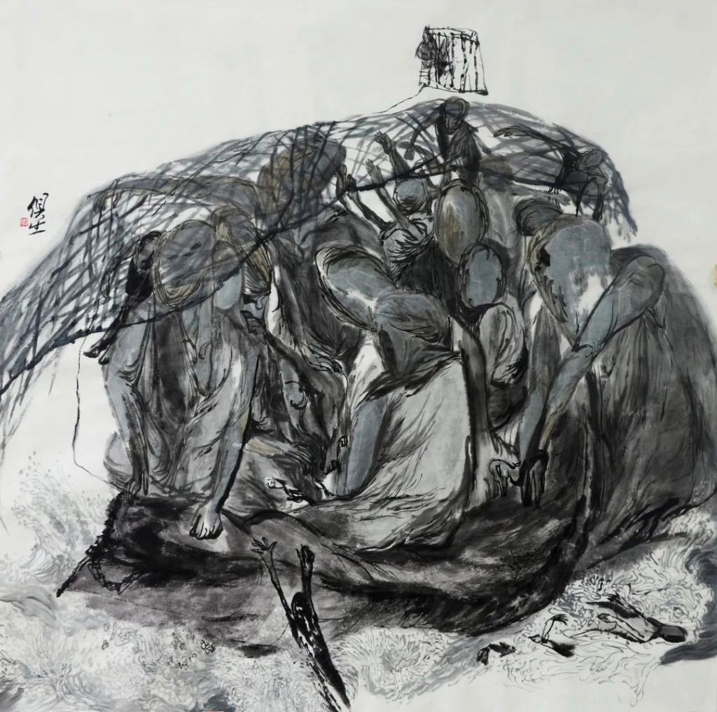 《井》164×144cm,纸本水墨,2019年