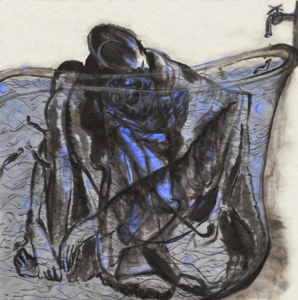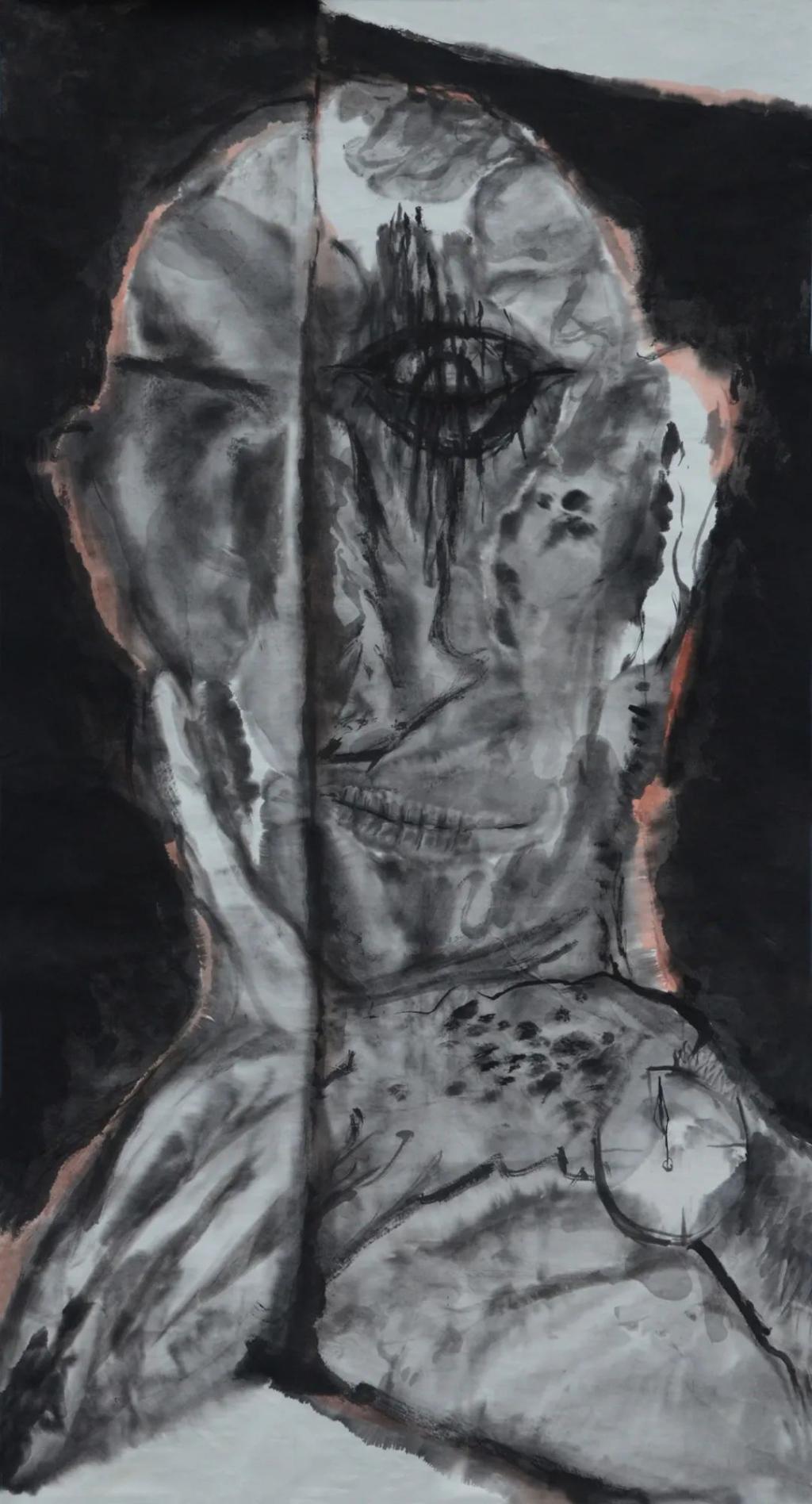 《时间之锁1》97×180cm,纸本水墨,2019年