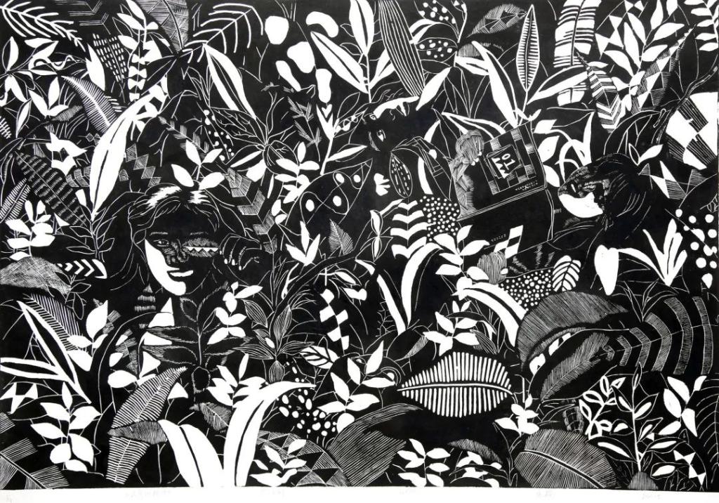 《治愈的绿叶》张樱 黑白木刻 74x111cm