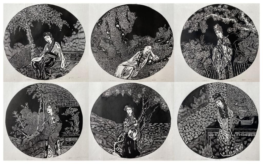 《粲然》蒋钰凤 黑白木刻 35x35cmx9