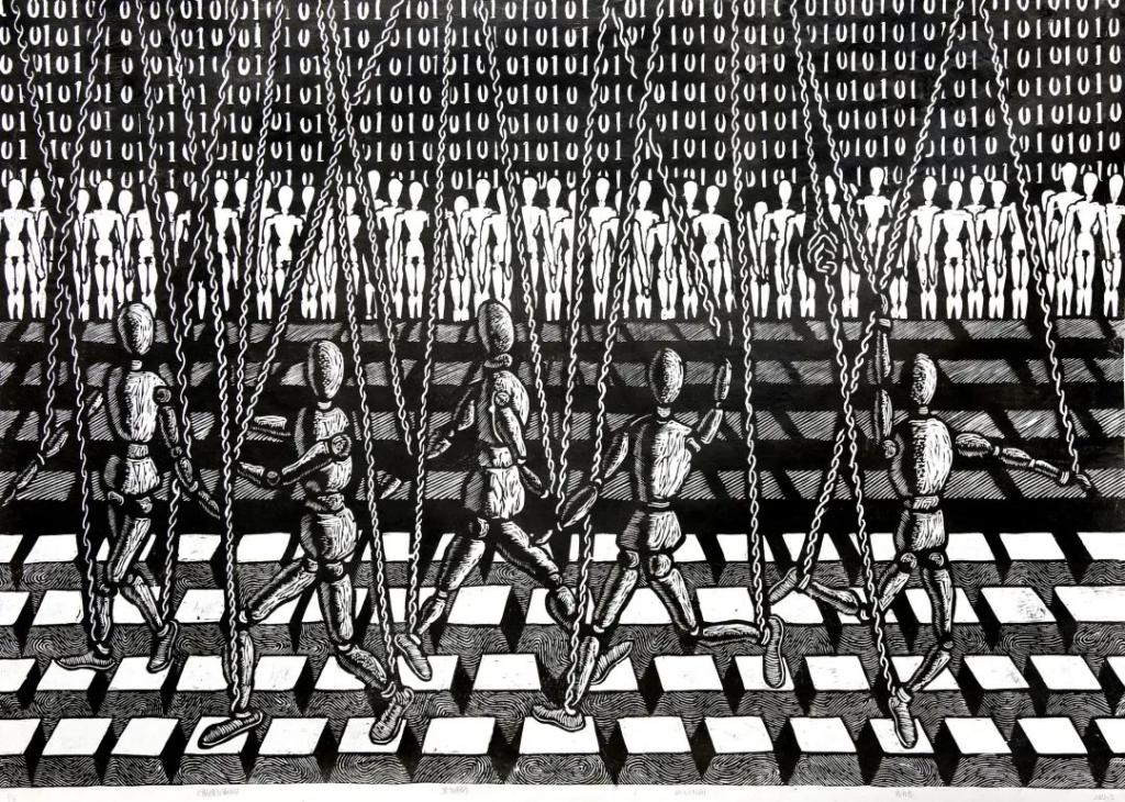 《创造者》任英 黑白木刻 60x80cmx3