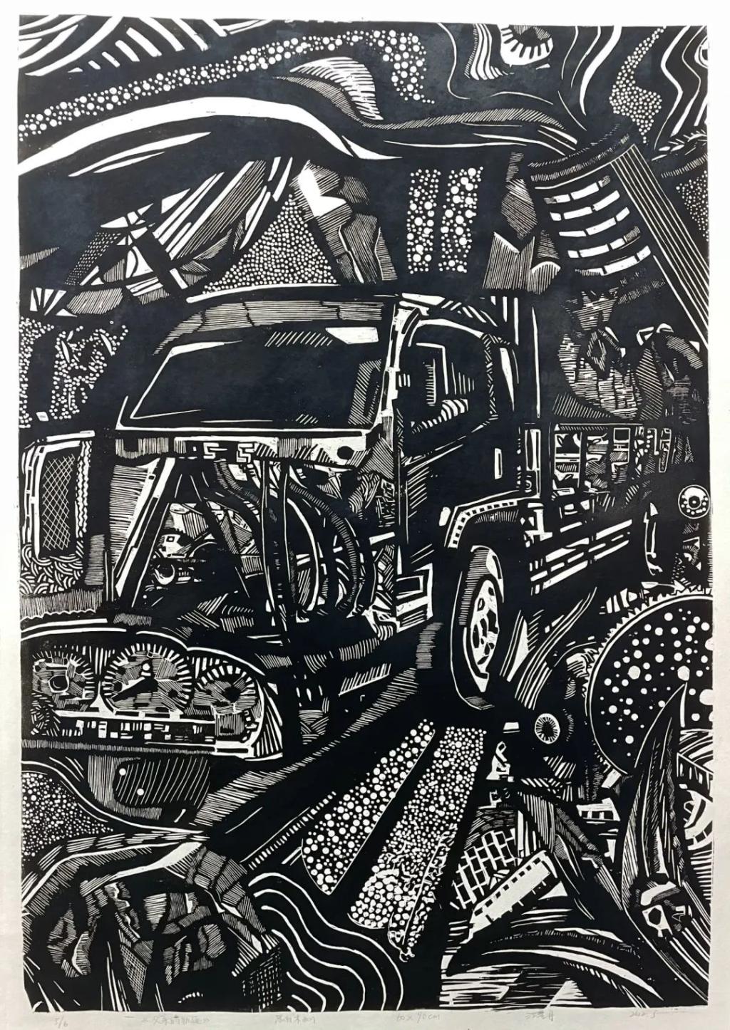 《父亲的轨迹》江星月 黑白木刻 60×90cm
