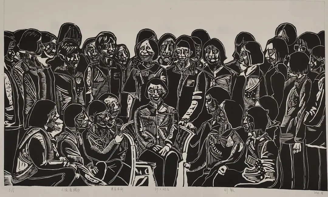 《迟暮之年》 何弟佳 黑白木刻 78x104cm