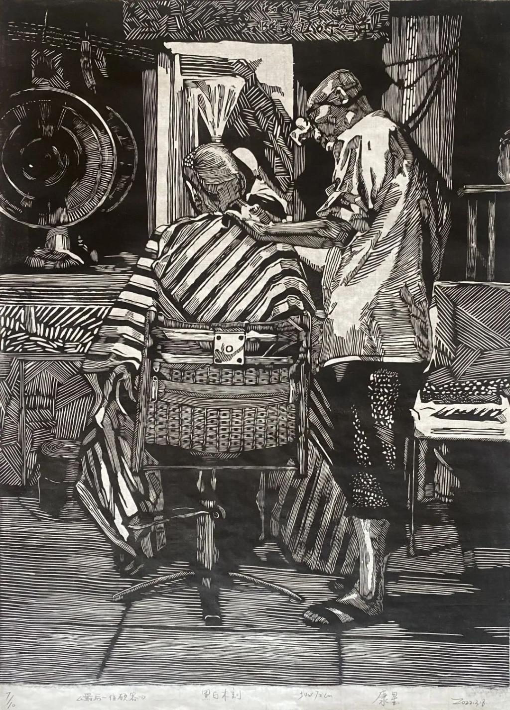 《最后一位顾客》康星 黑白木刻 54x72cm