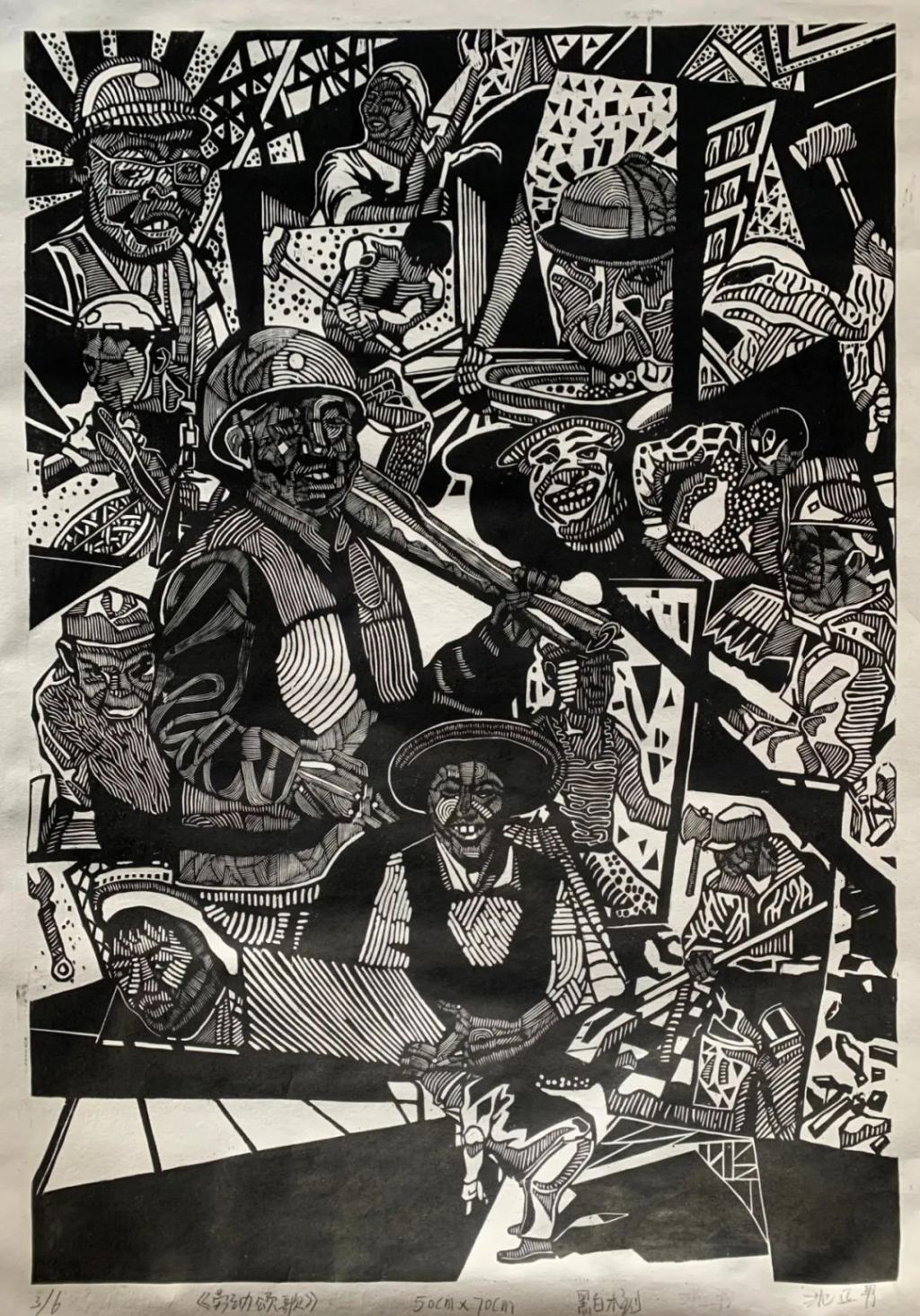 《劳动颂歌》沈正男 木刻版画50x70cm