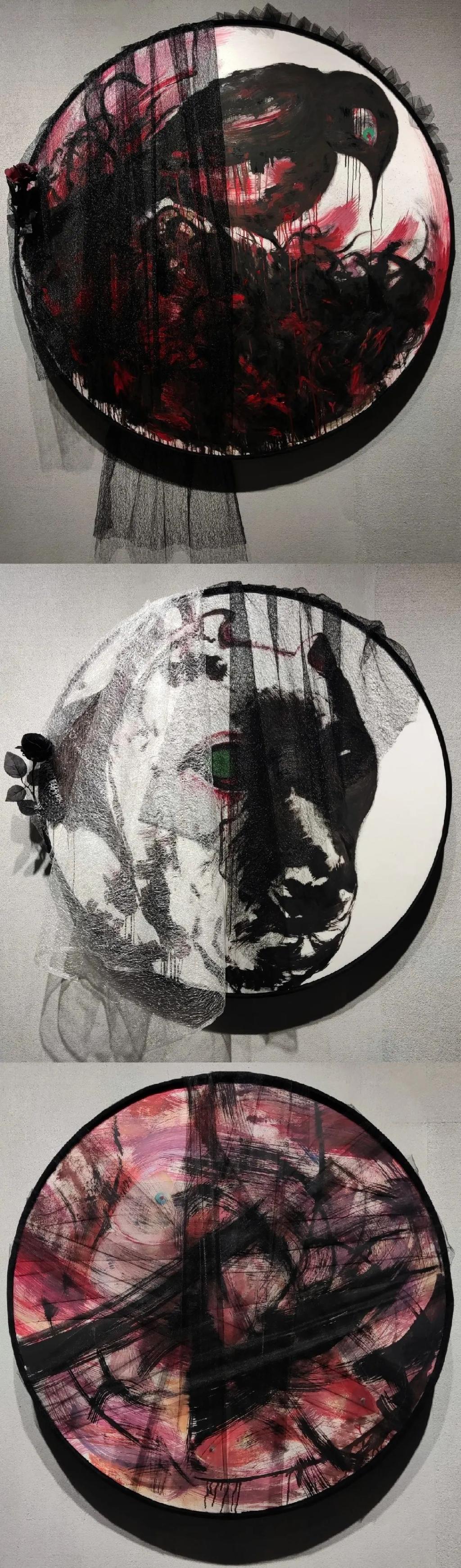 《默》·《目》·《以》 杨茜 油画 直径120cm 100cm 80cm