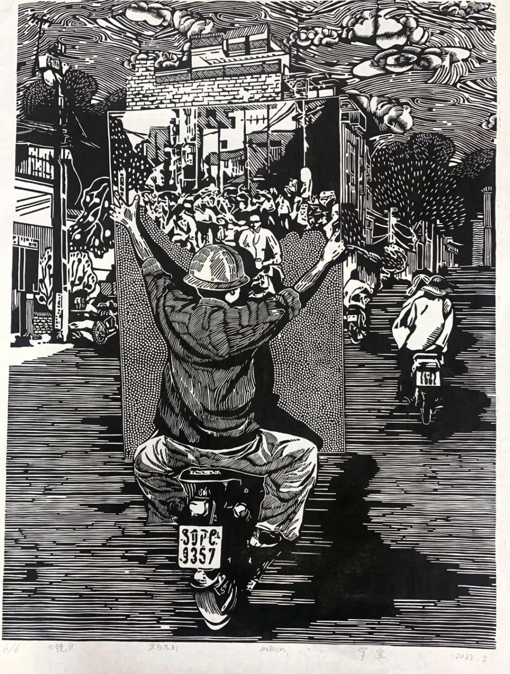 《镜》 罗宜 黑白木刻 60×80cm