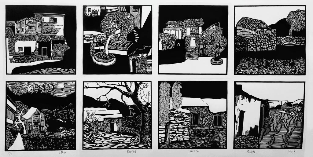 《今夕是何年》陈玲玲 黑白木刻 55×113cm