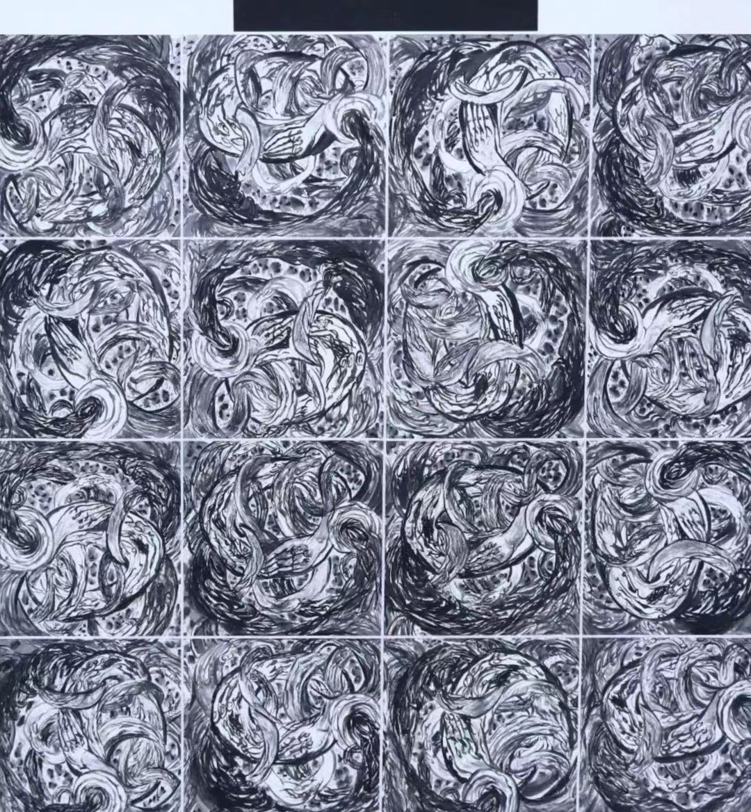 《山海有灵》刘永福 黑白木刻 130x130cm
