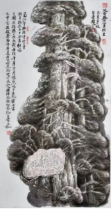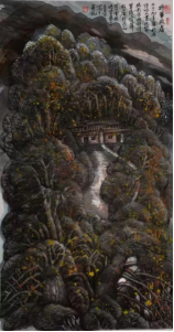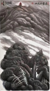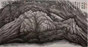 大山的巍峨与雄奇,是铸刻在他心中的信仰。他常说:“画画容易写字难,写字容易做人难”。在他心中,人品即画品、书品。他崇尚的人品,不仅有胡杨精神的坚忍与大漠的辽阔,更要有大山一样的雄强与拙厚。他魂牵梦绕的八台山、凤凰山、光雾山,诗画一般。在他基于深厚传统笔墨功夫基础上,自创“螺旋皴”及多种艺术手法,或块面、或明暗、或阴阳,都在尺幅天地间,尽彰笔墨的调谐与诗性,尽展巍峨与雄奇。他常用一方闲章“大山”,彰显了何文豪先生对巴山的特别情愫与信仰。巴山所彰显的气势与精神,不仅是基于生命的讴歌,更是他孜孜以求,躬耕砚田的人生追求。