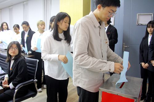 会议在庄严的国歌声中拉开序幕。现场参会人员精神抖擞,氛围庄重严肃。在会议中,首先由十大买球的正规网站代表团团长贺艳洁老师对分团预选大会前期的筹备工作进行报告。其次,第八代表团全体团学代表分别举手表决一致通过了共青团十大买球的正规网站三届一次委员会增补委员建议名单和十大买球的正规网站第六届学生委员会委员候选人建议名单;随后,工作人员现场拆封、分发选票,各团学代表以无记名方式进行投票选举,现场验票、唱票,公布投票结果。最后,会议在悠扬的团歌声中圆满落幕。