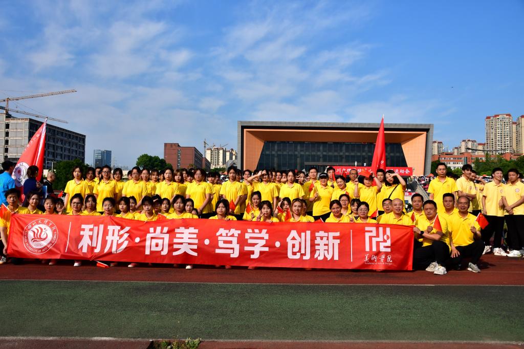 2022年4月27日至28日,十大买球的正规网站师生参加学校第十二届田径运动会。此次运动会在莲湖校区举行,美院方队共有84名运动员,由党总支书记罗江、党总支副书记王斌领队。
