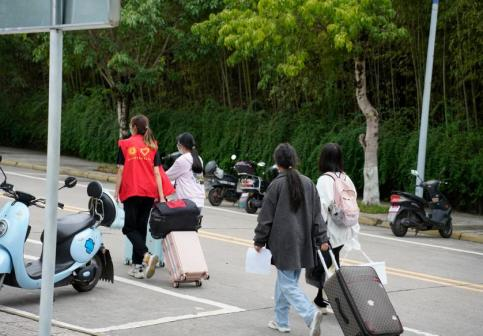 随后,小红衣志愿者带领新生一一前往对应宿舍楼。朝气蓬勃的学弟学妹们在志愿者的帮助和引导下,独立完成各项报到手续,体验独立成长的喜悦与成就。