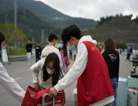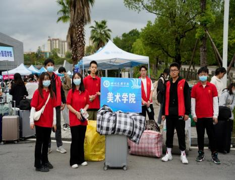 迎新接待工作如火如荼。在校门口,志愿者们接到刚入校的新生,并主动帮忙拎行李,引导新生逐一核实防疫行程卡、检测体温、行李消毒、核酸检测、前往学院报到处,切实落实好学校疫情防控的各项要求。