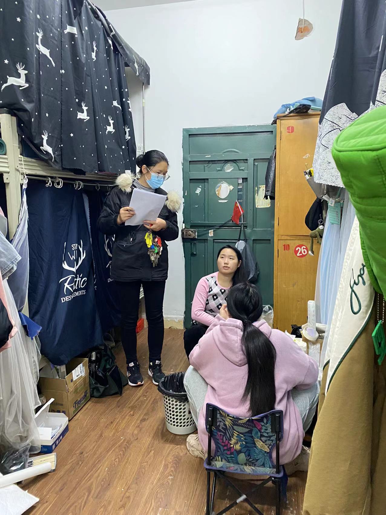 走访期间,罗江书记、王斌副书记等耐心询问在校学生近况,了解学生离校时间等,提醒学生平时要戴好口罩,做好防护,做自己健康安全的第一责任人;同时,仔细查看各个寝室是否存在违规使用明火、用电线路老化、私拉乱接用电线路、使用大功率电器等情况,对学生进行宿舍安全宣传教育。此外,针对学生近期存在的困难和疑惑,学院领导、老师也及时予以了回应,切实解决学生所遇到的问题,并做好相关记录。