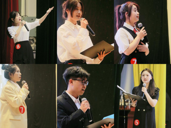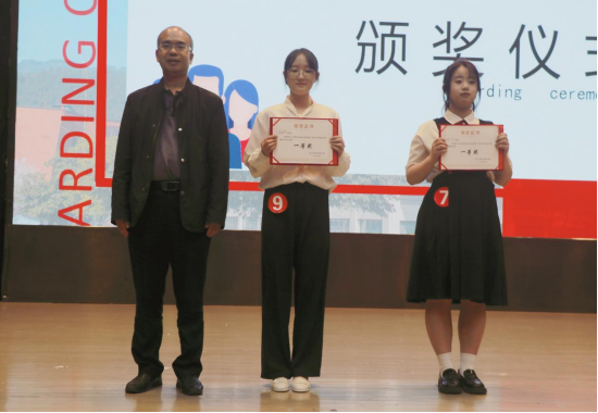 经评委老师评议,张汇林获朗诵比赛一等奖,时丽雯、刁建强获二等奖,陈毅科、郑继涛、谭敏杭获三等奖;高刘香获解说艺术比赛一等奖,龙丹、郑星获二等奖,陈昱印、郭思怡、孙阑妮获三等奖。王斌副书记、王泽、邓旭、胡培兵、沈瑶瑶等老师分别为获奖选手颁奖。