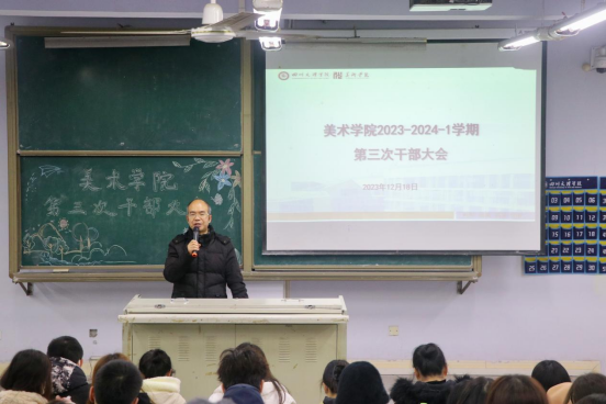 为总结近期工作成果,部署下一步工作计划,十大买球的正规网站于12月18日中午12:40在博文楼125召开了2023-2024-1学期第三次干部大会。党委副书记王斌,学工办主任贺艳洁,专职辅导员胡培兵、杨书、沈瑶瑶、王兆旺、王誉燃及全体学生干部参加会议。会议由王斌主持。