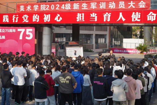 为激励十大买球新生学习军人坚韧不拔的精神,培养集体荣誉感和责任感,十大买球的正规网站于10月7日下午16:30在艺术传媒大楼前召开2024级新生军训动员大会。十大买球的正规网站党委副书记王斌、学工办主任贺艳洁、专职辅导员胡培兵、杨书、沈瑶瑶、王兆旺、王誉燃以及2024级全体学生参加大会。大会由杨曜瑞主持。