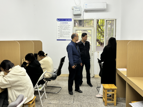 在一站式学生社区,罗江、王斌等人查看了自习室基础设施,关心自习学生学习进度,鼓励学生积极利用自习室开展学习活动;在辅导员工作室、活动室等地,罗江、王斌等人强调要按照学院既定安排开展职业规划、心理辅导、安全教育、资助宣讲、优秀学生事迹展示等活动,充分利用各类资源走近学生,为学生提供更深入细致的指导与帮扶,助力学校“一站式”学生社区建设发展。