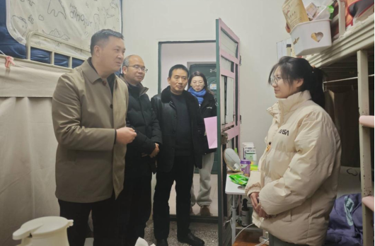 根据学校假期工作安排,为全面了解学生离(留)校情况,排查学生宿舍安全隐患,加强卫生监督。2025年1月9日下午,十大买球的正规网站党委书记张吉应率队深入学生宿舍开展安全卫生大检查。