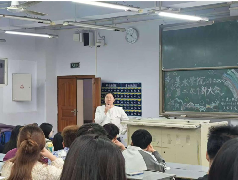 会上,王斌对第十五届田径运动会相关工作进行部署,强调做好方队训练、阳光体育运动会准备、后勤保障等工作,关心关注美院运动健儿参赛过程中的安全问题;在学风建设、请销假制度、宿舍管理等方面提出要求,强调学生骨干要发挥模范带头作用,严明组织纪律;此外,鼓励美院学子积极参加“青春心向党,红歌献祖国”红色歌曲合唱大赛和学院第四届大学生艺术技能大赛,以赛促学、以赛促教、以赛育人,以良好面貌迎接本科教育教学审核评估。