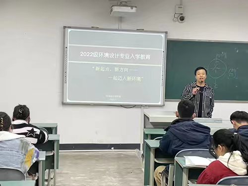 2022年11月18日晚上19:00,环境设计教研室精心组织安排,在学院党委的统筹领导下,学工部协同教科办、教研室共同筹办,结合自身专业特色,开展了有针对性的入学教育活动。会议在艺术传媒大楼4016举行,以“新起点,新方向——一起迈进新环境”为主题,环境设计教研室主任陈红强老师担任主持人,环境设计教研室部分教师、2022级全体同学列席本次会议。