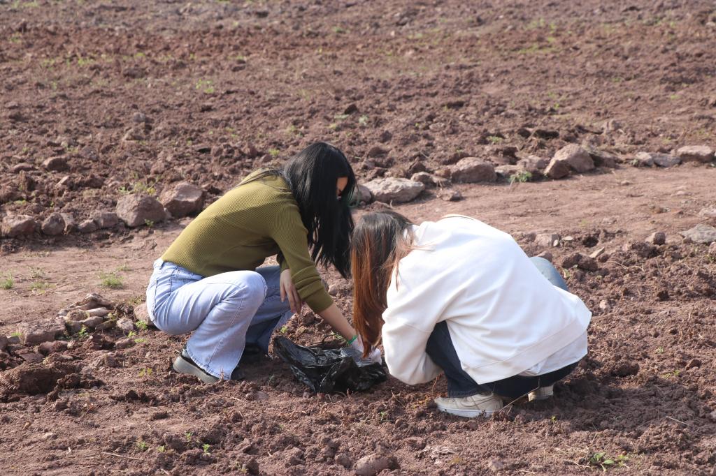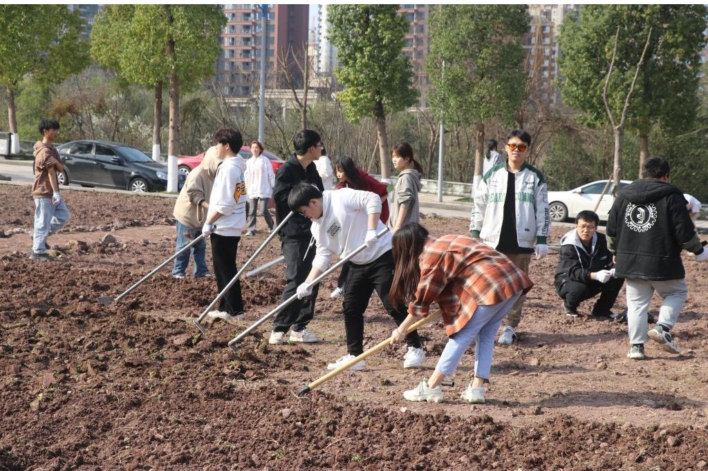 学院团总支学生会劳生部负责人简要介绍了主要任务、翻土流程及安全事项,同学们便有序投入劳作中。罗江书记与王斌副书记亲自为同学们示范劳动工具的用法并分享翻土技巧,贺艳洁老师与沈瑶瑶老师则戴上手套,指导带领同学们除草、移石。大家团结协作,撸起袖子加油干,挥舞铁锹翻新土,呈现出一派热火朝天的劳动场面。目前十大买球劳动教育区域已基本完成翻土及杂草清理工作,下一阶段将进行施肥、花种播种等工作。