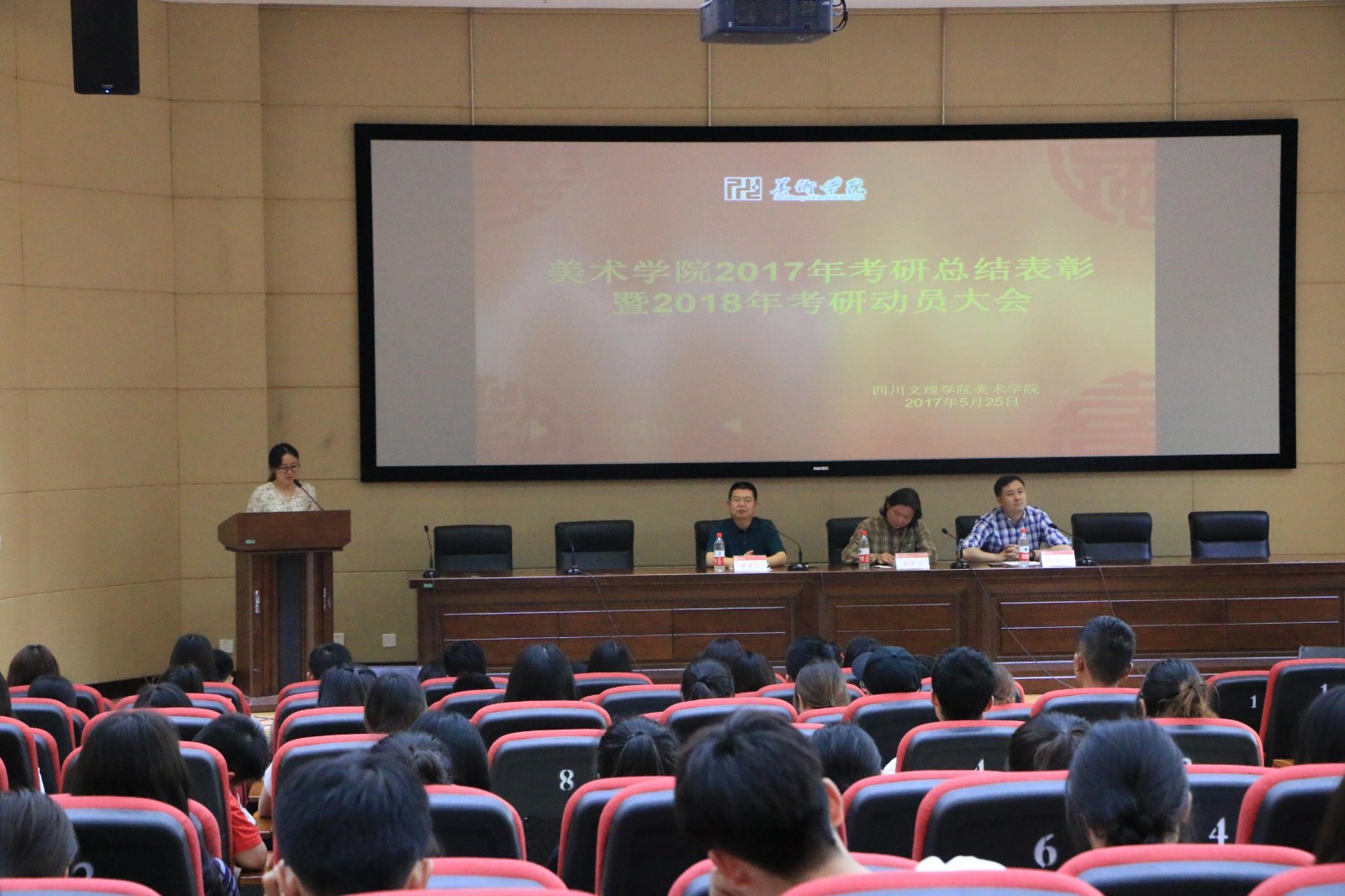 5月25日下午,十大买球在图书信息大楼学术报告厅A厅隆重举行2017年考研总结表彰暨2018年考研动员大会。学院党总支书记张吉应、院长刘承川、辅导员以及全体修业班同学参加本次大会,会议由党总支副书记尹羿之主持。