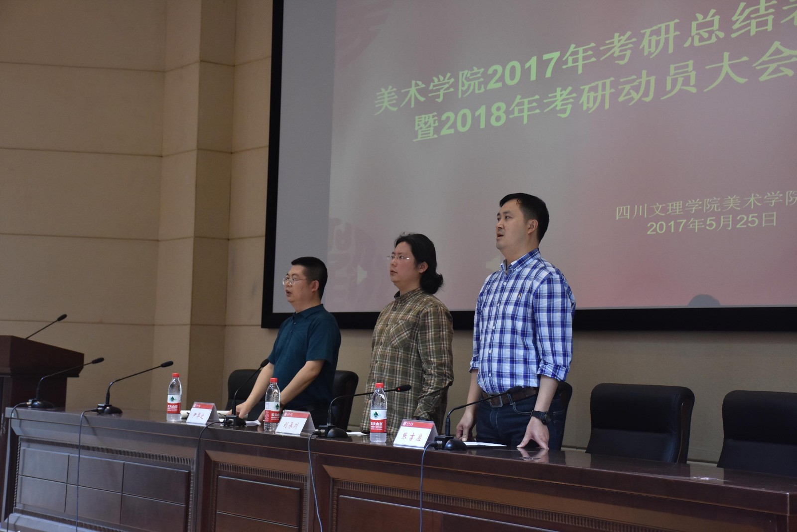 最后,学院党总支书记张吉应作2018年考研动员。首先张书记对今年考上研究生的同学表示了热烈祝贺;其次张书记从三个方面做了动员:1.重新站立起来,通过生动的案例就考研的动机和方向给同学们做了详细讲解,希望同学们能够志存高远、努力学习、充分利用好学校、学院提供的各项有利资源;2.社会人才质量的需求,从专业发展到社会进步,张书记告诫大家争做更高水平有文化追求的人。3.张书记从就业形势、个人发展、核心竞争力三个要点做了立志考研的现实需要的重要阐述,号召同学们立志成才,不断进步。