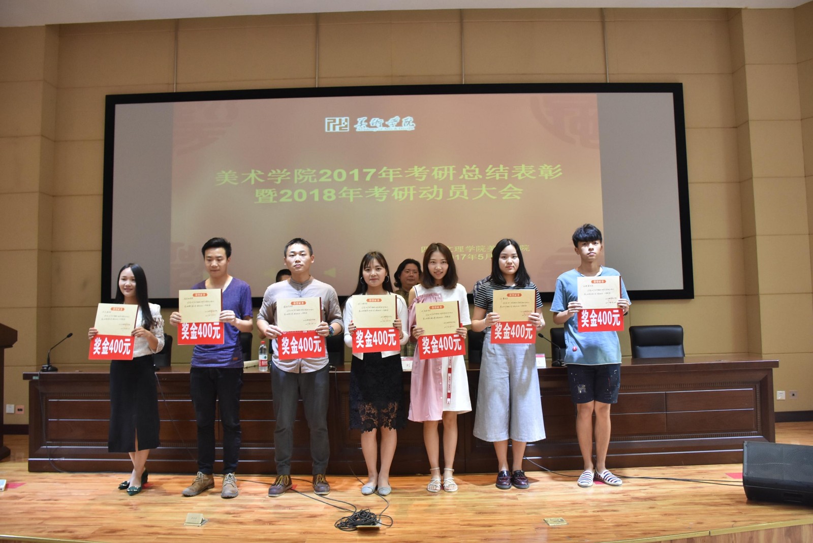 大会在雄壮的国歌中拉开帷幕,尹羿之副书记首先宣布了十大买球的正规网站关于表彰2017年考取硕士研究生学生的决定,随后学院领导向十大买球考上研究生的21名同学颁发了奖状及现金奖励400元。然后孙晓琴、杨磊、张静三名考研代表分别做了经验与心得发言。考入深圳大学的孙晓琴同学介绍了跨专业考研的选择方法及注意事项,学习方式是成功的关键,她相信付出一定会有回报。考入西南民族大学的杨磊同学针对考研学校的选择、小语种学习和专业复习几个方面分享了个人的经验,他建议大家根据自身的实际情况选取适合的学校。最后考取了齐鲁工业大学的张静同学从动力与决心、学习与工作两个方面进行了真情实感的交流,她坚信努力追求自己的理想与信念一定会梦想成真。三位同学的发言让大家备受鼓舞。