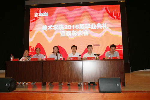院长刘承川代表学院向三年或四年来培养、教导的老师们,向辛苦指导毕业创作、毕业论文的老师们,为毕业创作展进行布展、策展、评分的老师们等,表达了谢意;向学业有成、即将告别母校、踏上新的人生征途的毕业生表示最热烈的祝贺!并衷心地向全体毕业生提几点希望:1、衷心希望同学们在祖国各地都能找到一份理想的工作,并干出一番辉煌的事业来;2、衷心希望同学们在艺术的大道上越走越远,越走越好,辈出几位著名的艺术家和设计师;3、衷心希望同学们活到老、学到老,不断提高自身的学历和能力,希望都能成为学士、硕士和博士;4、衷心希望同学们都能找到理想的白马王子和白雪公主,组建美好温馨的家庭,开启人生新的篇章;5、衷心希望同学们感恩社会、感恩母校,饮水思源,知恩图报,常回家看看。