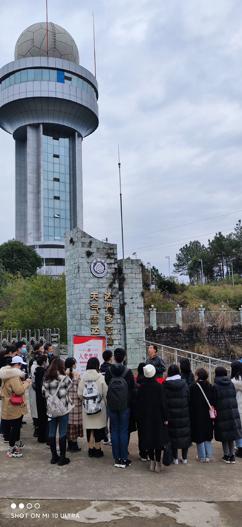 到达雷音铺后,大家列队前往山顶参观多普勒天气雷达站,党总支宣传委员黄崇岭同志向大家介绍了该雷达的情况,该雷达建成于2008年7月,能全天候时时监测云层变化,为达州地区气象提供精确的科学数据,为生产生活提供气象服务,还能对即将发生的灾害天气提供预警,减少经济损失和人员伤害,为达州经济建设和人民生活保驾护航,促进了达州的经济发展,是科技兴川的实干体现。