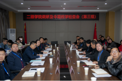 会上李壮成副校长强调今年教务处为提高工作效率,切实完成中期检查工作,此次调研及中期教学检查会分成三组进行,本组现场分别调研了体育馆,查看了各二级学院的运行管理文件,最后集中座谈,听取各二级学院的汇报和反馈检查过程中发现的具体问题。