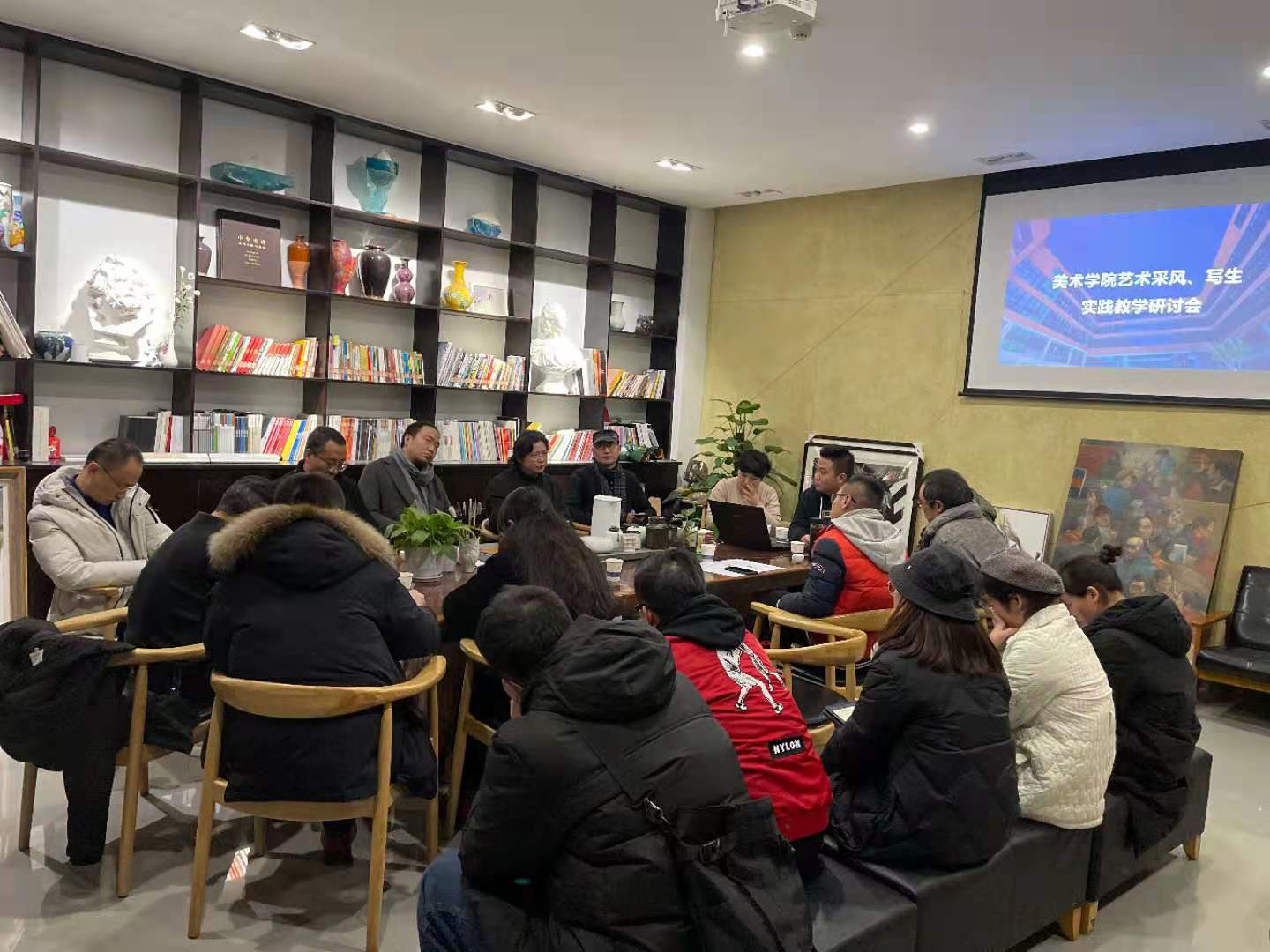 2021年1月4日十大买球的正规网站“自然·印象”艺术采风、写生师生作品展在美术馆拉开帷幕。1月6日十大买球的正规网站绘画教研室、设计教研室、美术馆、教科办等职能部门与任课教师一起,在美术馆交流中心就“艺术采风、写生”实践教学展开了激烈的教学研讨。会议由绘画教研室主任胡川主持。