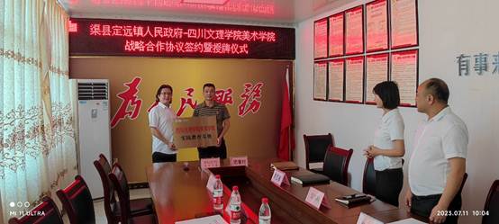 签约仪式上,刘承川代表学院与定远镇镇长郑卓林签订了《战略合作框架协议》,并向定远镇团寨村授予“十大买球的正规网站实践教育基地”牌匾。