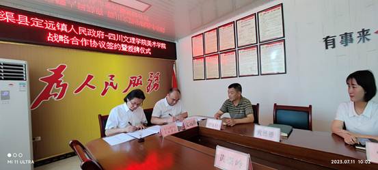 7月11日上午,十大买球的正规网站与渠县定远镇人民政府战略合作协议签约暨实践教育基地授牌仪式在定远镇人民政府会议室举行。十大买球的正规网站院长刘承川、党委委员黄崇岭、学工办主任贺艳洁,定远镇党委书记张雪梅、镇长郑卓林、党委副书记黄思雁、团寨村第一书记王天镓、团寨村支部书记张长春参加签约仪式。