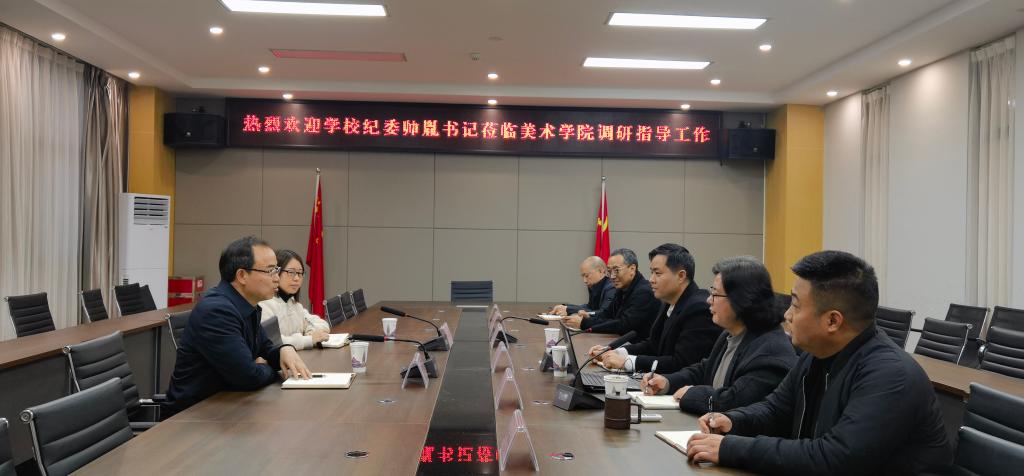 帅胤对十大买球的正规网站党的建设、干部队伍、学科建设、专业认证、科研创作、学生培养、美育教育、产教融合、社会合作等方面取得的成绩给予了充分肯定,对十大买球的正规网站党建思政、廉政建设、专业发展、合作育人等工作给予了深入指导。他指出:要深入学习贯彻习近平新时代中国特色社会主义思想,以党的理论武装头脑,让师生在教学、创作实践中学习与体现,并落实好基层党组织“三会一课”制度;要履行好党组织主体责任,抓好组织建设、制度建设和党风廉政建设;要抓好意识形态工作,筑牢思想政治根基,加强青年党员和艺术人才的思想政治教育;要发挥专业优势开展党风廉政建设主题创作,为廉洁文化建设多做贡献。他还对调研中发现的基础建设、实习实训、职称评聘等问题给出了中肯的建设性指导意见。