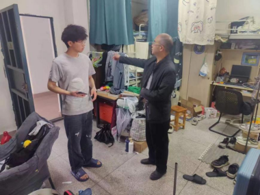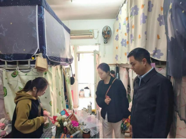 为保障五一小长假期间学生公寓安全稳定,积极引导学生养成健康的生活习惯,在十大买球的正规网站党委书记罗江、副书记王斌的带领下,学工办主任贺艳洁、专职辅导员胡培兵、杨书、沈瑶瑶、王兆旺、王誉燃以及学生干部代表于4月25日下午深入学生宿舍,全面开展宿舍安全与卫生检查工作。
