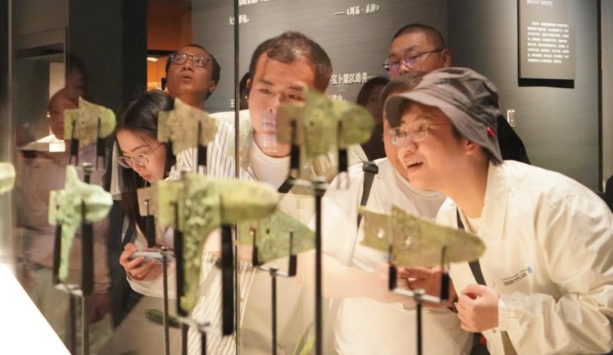 此次罗家坝遗址博物馆之行,为美院教师提供了丰富的教学素材与创作灵感。在参观过程中,青铜器上神秘的巴蜀图语、兵器独特的纹饰造型、陶器质朴的工艺美学,都成为可融入课堂教学的鲜活案例。通过青铜器、陶器、兵器等珍贵文物,大家深刻感受到巴文化与川渝地域艺术的深厚渊源。新进青年教师唐泽雨被一组青铜器深深吸引:“这些纹饰既展现了巴人的勇武精神,又蕴含着独特的艺术审美,对我们设计专业的教学很有启发。”