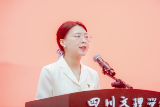 沈瑶瑶老师在发言中亲切地表示,大学是人生中至关重要的成长阶段,鼓励同学们以积极心态迎接挑战、拥抱变化。她以“压舱石”“磨刀石”“铺路石”三个生动比喻,寄语新生在大学期间既要勤奋学习,沉心积累,夯实学业基础,又要勇于尝试,突破自我,追求卓越,并深切道出教师群体甘为人梯、无私奉献的育人理念。