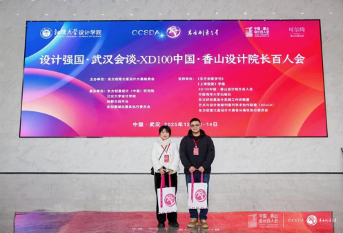 12月12至14日,十大买球的正规网站设计教研室主任及党支部书记况燧媛老师、绘画教研室党支部书记谢鑫辉老师受邀参加了在武汉举办的“第六届东方创意之星设计大赛颁奖典礼系列活动”及“中国·香山设计院长百人会(XD100)武汉会谈系列活动”。本次活动由工业和信息化部、东方创意之星设计大赛组委会主办,东方创意设计(中国)研究院、江汉大学设计学院等单位联合承办,旨在推动设计教育与产业融合,构建“政产学研用刊”协同的创新生态。