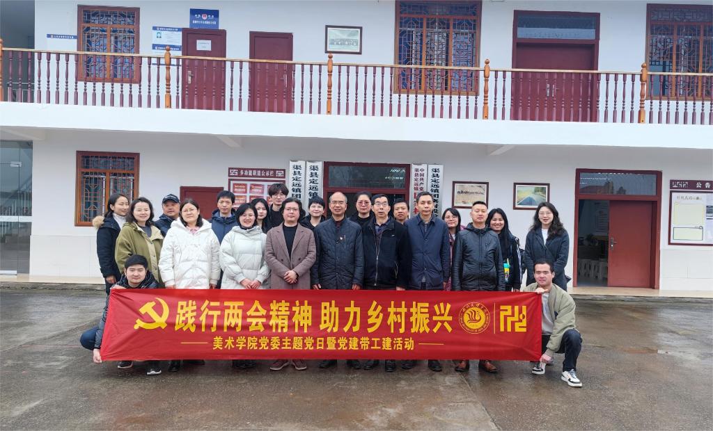 为贯彻落实全国两会精神,实地考察达州市乡村振兴发展情况,推动艺术进乡村,与地方开展专业实践合作,助力乡村振兴,3月25日,十大买球的正规网站组织教职工赴渠县定远镇团寨村开展“践行两会精神·助力乡村振兴”主题党日暨党建带工建活动。