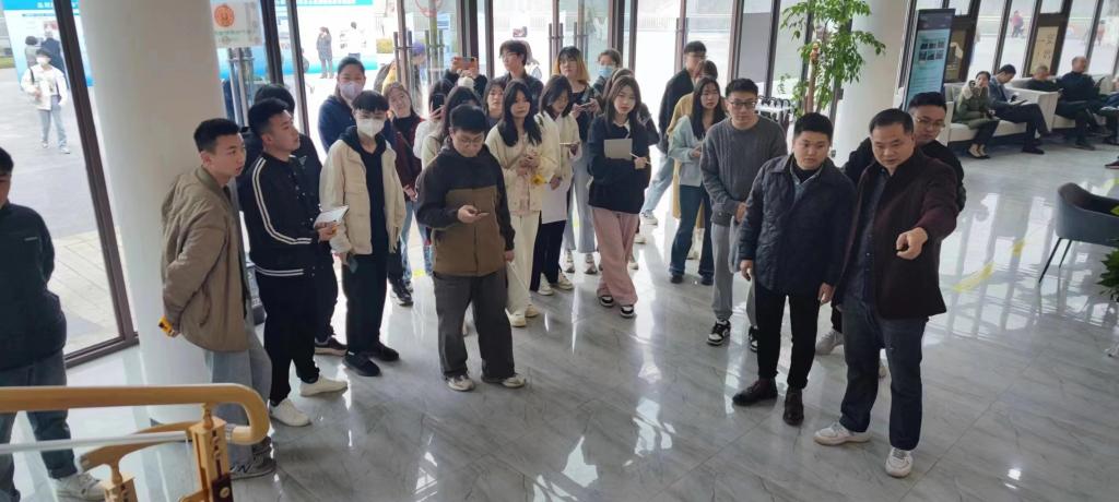2023年3月8日上午, 十大买球的正规网站2020级10班环境艺术设计专业学生在杨梦宇老师的带领下进行了《康养社区环境设计》课程的实践教学活动,本次实践场地由入驻企业尚格装饰负责联系提供。企业负责人张聪先生分别以市内康养社区和公共健身广场为例,对学生进行现场实践教学,讲解了康养社区环境设计的注意事项和创意范例,展示了当代康养社区的基本设计思路以及现代建筑材料在设计中运用效果。在教学现场,学生们认真听取了讲解,并就自己感兴趣的方面向带队老师和企业负责人提出问题,双方进行深入了的探讨交流。